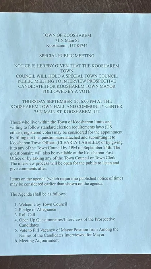 Vote for a New Mayor - September 29th at 6:00pm at the Community center